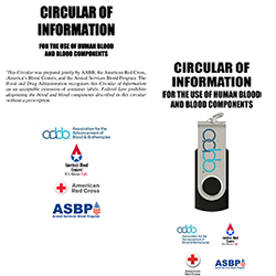 Prepared by AABB, American Red Cross, America’s Blood Centers, and the Armed Services Blood Program, this Circular is an extension of the container label and recognized as acceptable by the FDA. The FDA has detailed how the Circular in brochure format is to be used as well as the conditions under which the Circular on USB drive can be used. This important information is located on the Circular page of this website. This bundle contains three sets (150 copies) of brochures and one USB.