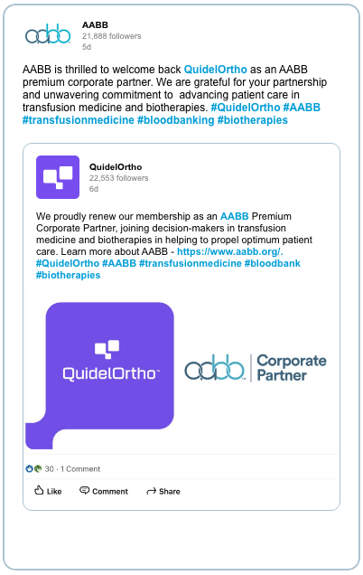 As well as offering access to AABB membership and the opportunity to establish key relationships with decision makers and leaders in the field, the program delivers a suite of additional benefits uniquely curated to help you increase corporate visibility and achieve business goals.